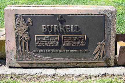 At left: John and Mabel BURRELL Headstone, Highton Cemetery, Geelong, Victoria, Australia, 27 August 2005.